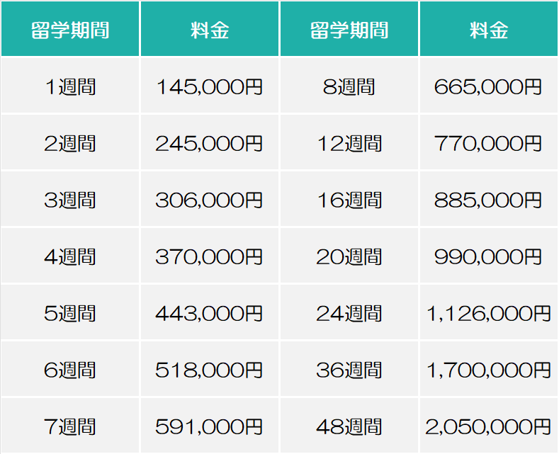 1ヶ月の留学費用は約35万〜45万円が目安で、都市や学校の選択肢が幅広く、自分に合ったスタイルで学びたい方に人気です。
